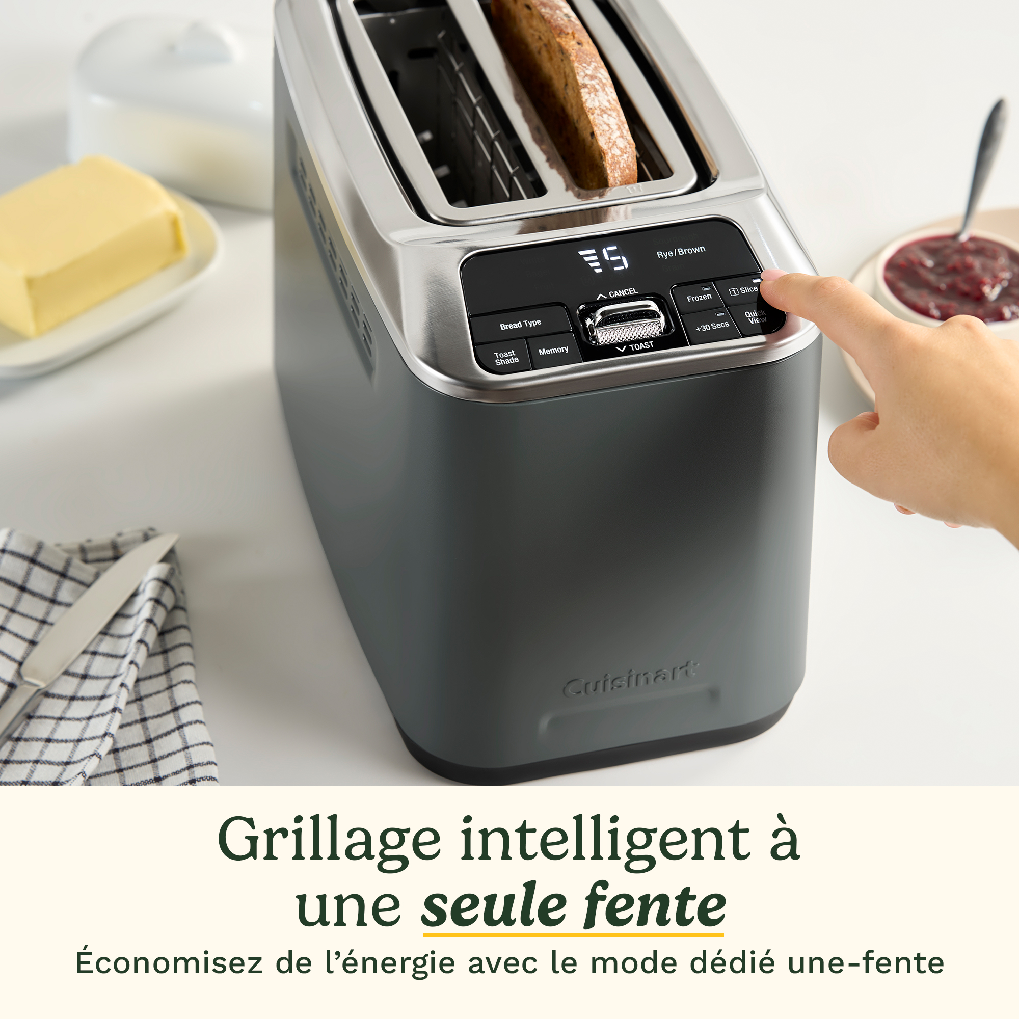 - Grillage à une seule fente pour une utilisation énergétique intelligente: Vous ne grillez qu’une tranche ? Économisez de l’énergie avec le mode fente unique, idéal pour les collations rapides ou les petits-déjeuners en solo.